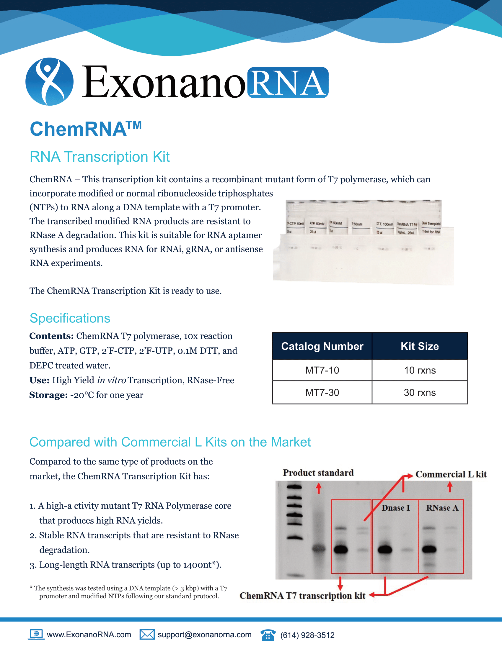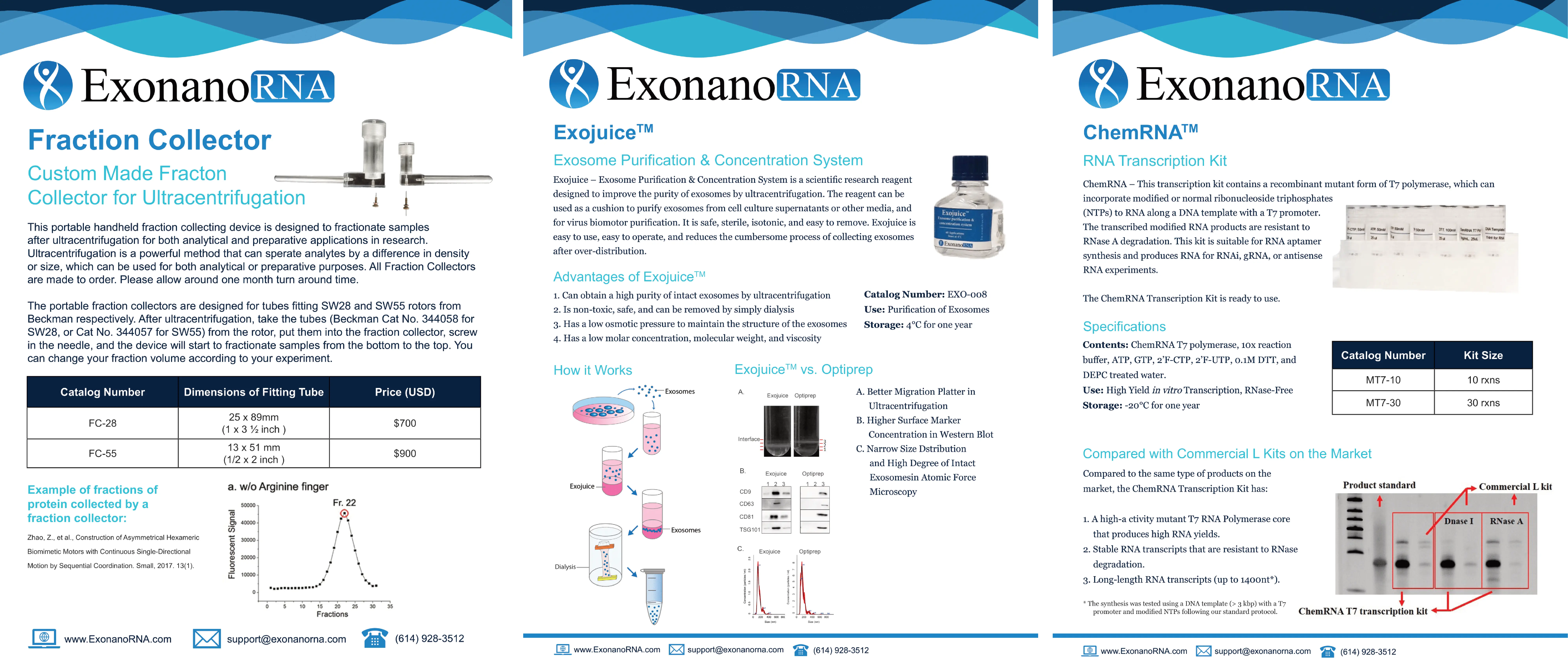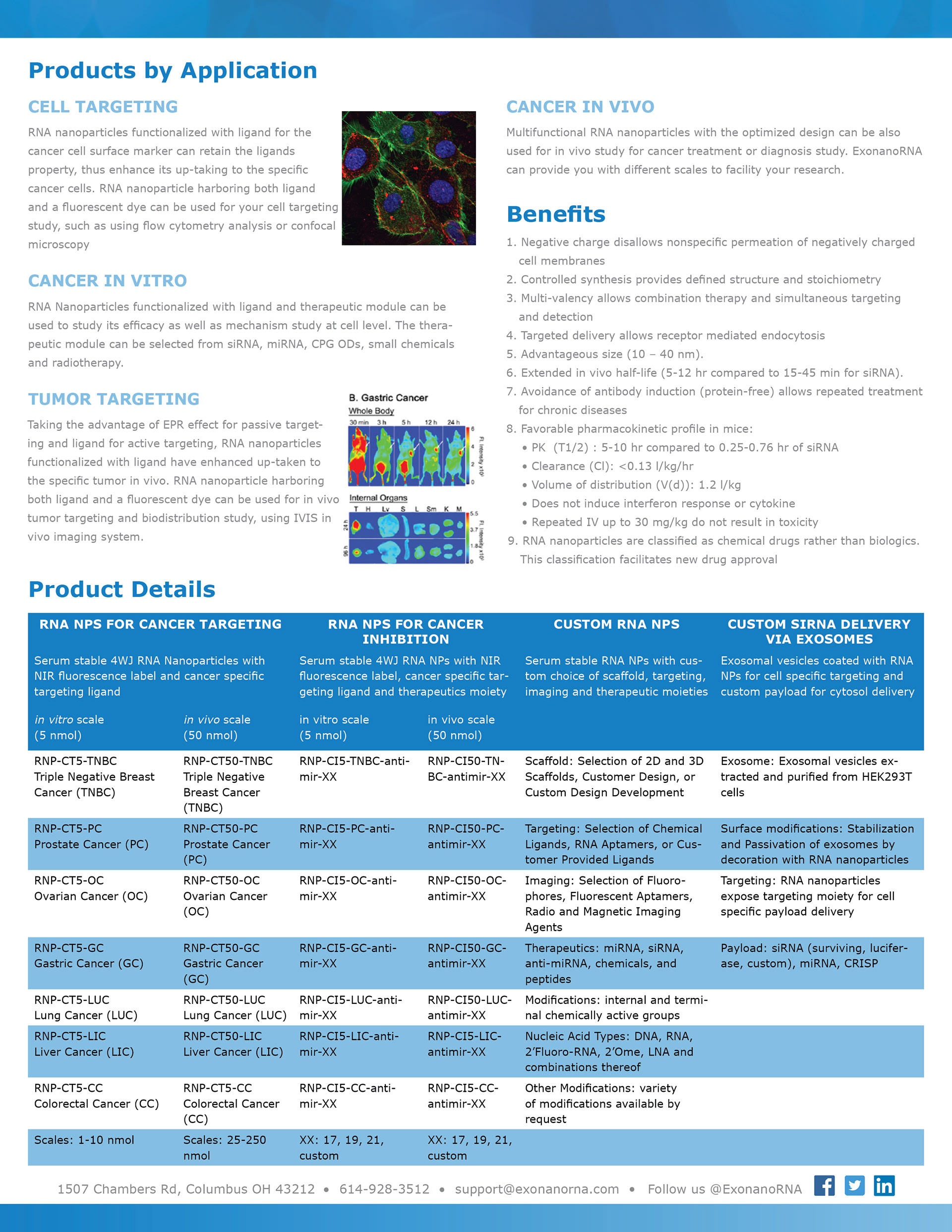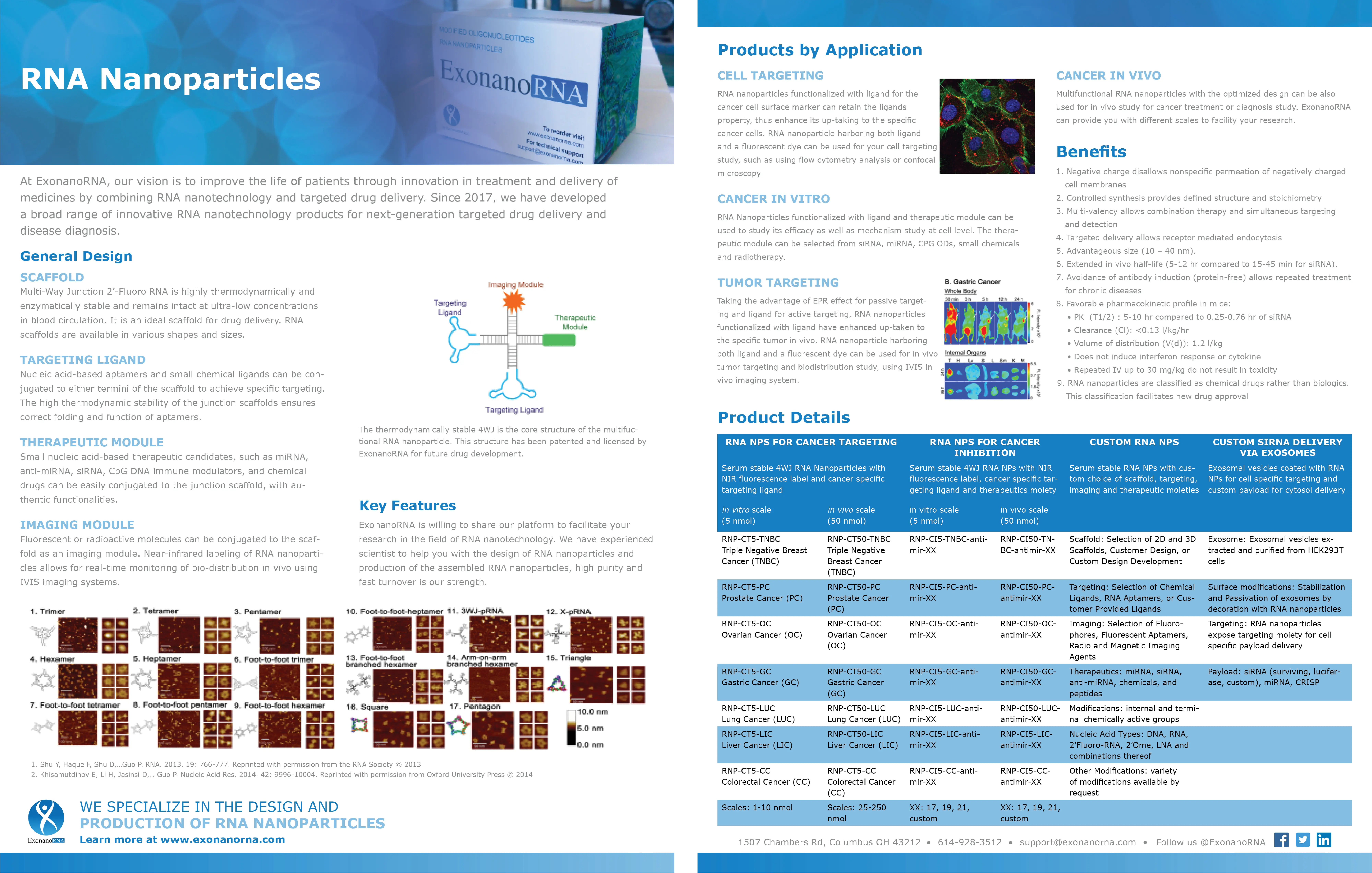 ExonanoRNA (Columbus, OH) was established to fill a market gap for the commercial production of high-quality RNA nanoparticles for research and pre-clinical development in areas such as cancer therapeutics.